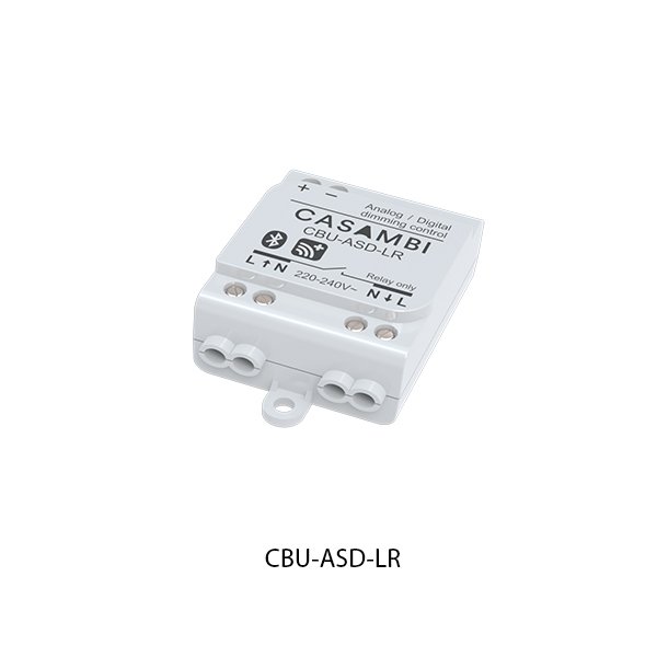 Casambi CBU ASD LR merupakan kontrol pintar fleksibel yang dirancang dengan input AC universal, output dua saluran, dan kemampuan nirkabel mesh untuk mendukung pengoperasian 0-10V dan DALI. Mampu berfungsi sebagai “single‑channel DALI controller + power supply” (standalone DALI output).