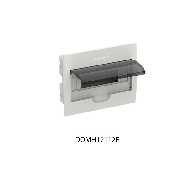 MCB DOMH12112F merupakan kotak panel listrik untuk tempat pemasangan perangkat dalam satu kesatuan panel distribusi listrik kecil (hingga 12 modul lebar 18mm). Design estetis, compact, clear, dirancang dengan isolasi self-extinguishing untuk meminimalkan risiko kebakaran akibat hubungan arus pendek atau percikan listrik dalam panel.