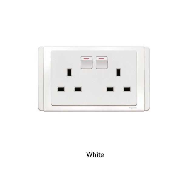 Twin Saklar Soket 13A menghadirkan dua titik sambungan dalam satu plate, praktis untuk lokasi yang membutuhkan dua perangkat yang sering digunakan, memudahkan memutus aliran ke masing soket tanpa melepas plug.