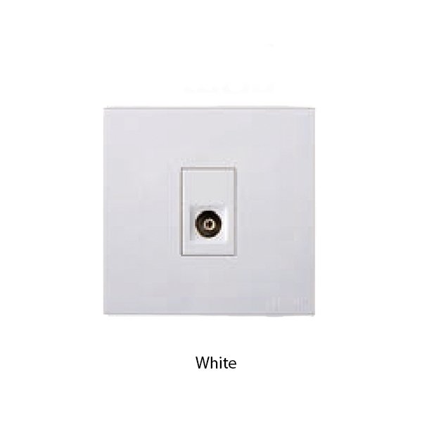 Simon E6 Series 725111 adalah soket terminal tv tipe F (koaksial), ideal untuk residential dan komersial. Socket E6 TV Outlet tersedia pilihan frame 1 tombol (1-gang) hingga 4 tombol (4-Gang).