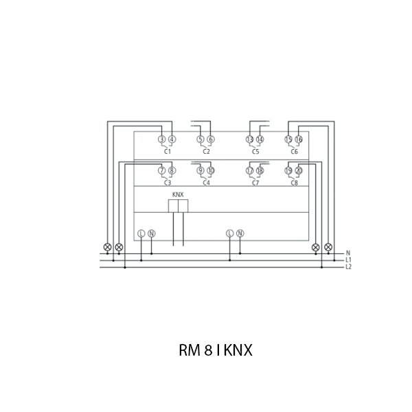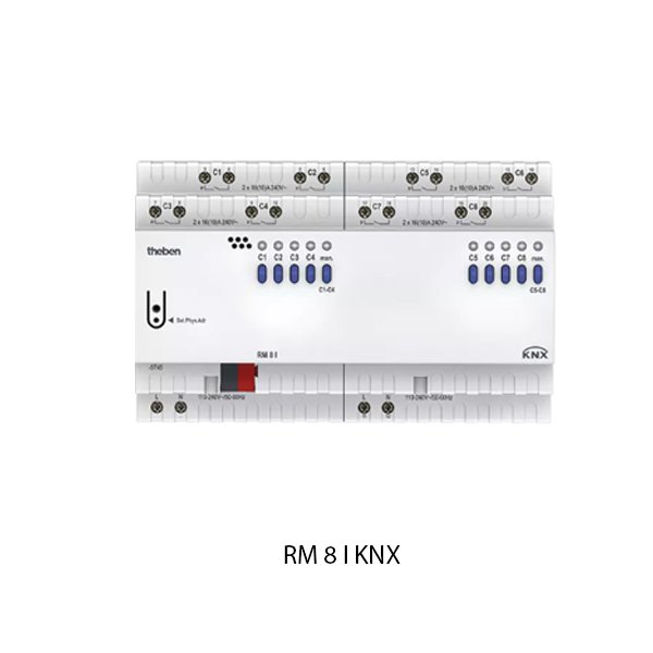 RM 8 I KNX merupakan base module berbasis sistem KNX yang memiliki 8 kanal untuk mengendalikan beban pencahayaan/energi besar pada sistem otomasi bangunan, dirancang untuk beban kapasitif (C-Load) hingga 16A dengan karakteristik arus masuk tinggi. Dilengkapi fitur current detection per-kanal untuk memonitoring beban yang dikendalikan