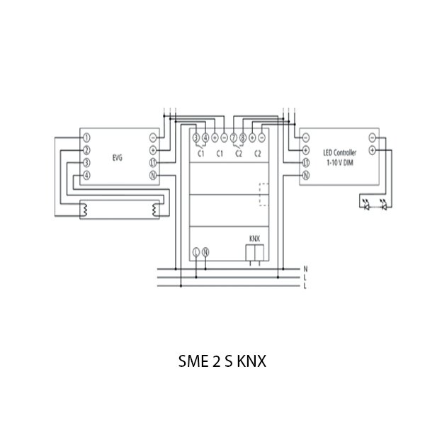 SME 2 S KNX merupakan ekstensi module 2 kanal 1-10v dimming dan switching pencahayaan potensial-bebas perkanal, dilengkapi teknologi switching “zero crossing” untuk melindungi relai saat beban dimming atau switching.