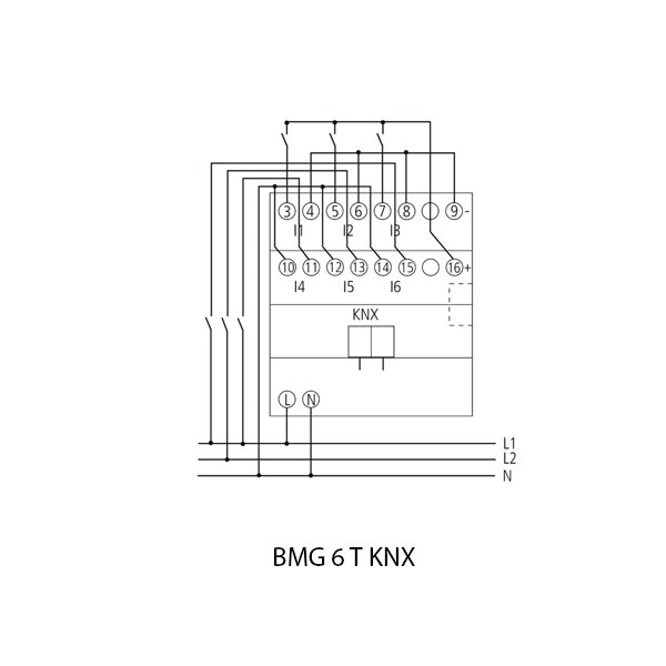 theben BMG 6 T KNX merupakan base module MIX2 binary input 6 kanal, membantu “memasukkan” sinyal eksternal ke jaringan KNX (misalnya: tombol tekan, kontak terbuka/tertutup, sensor keamanan).