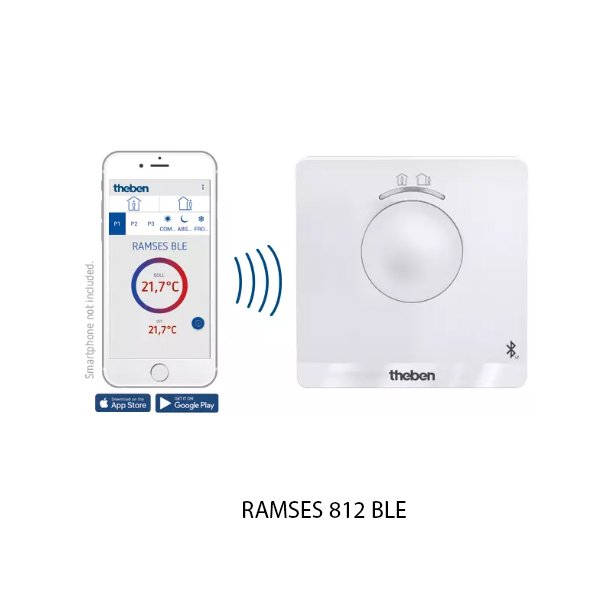 Theben RAMSES 812 BLE merupakan thermostat digital, dilengkapi fungsi jam/program waktu untuk pengaturan suhu ruangan berdasarkan jadwal (time-program). Memiliki 3 program mingguan yang dapat dikonfigurasi individu (“comfort”, “eco”, dan “setback / pengurangan suhu”). Mekanisme kontrol menggunakan smartphone koneksi Bluetooth Low Energy (BLE).