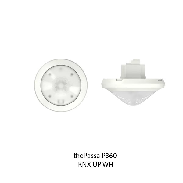 theben The Passa P360 KNX UP merupakan sensor gerak berbasis passive infrared dan sensor cahaya terintegrasi sistem KNX. The Passa P360 KNX UP dirancang untuk pemasangan pada ceiling, mendeteksi entitas dalam ruang 360°, mengontrol pencahayaan dan logika sistematisasi. Override manual lewat tombol KNX eksternal, mode otomatis/semiotomatis, fungsi malam/hari (day/night switching), orientasi / standby (orientation light).