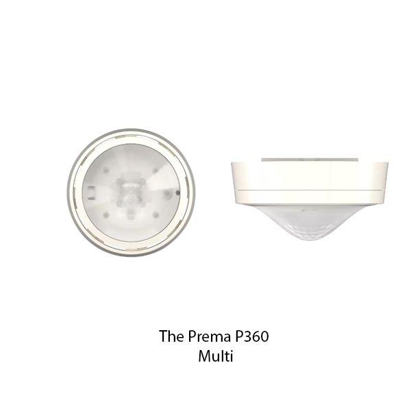 theben thePrema P360 KNX AP Multi merupakan perangkat multi-sensor KNX berbasis passive infrared. thePrema P360 KNX AP Multi dirancang untuk pemasangan pada ceiling dan kompatibel dengan sistem KNX. Menggabungkan passive infrared presense detector dan air quality sensor (CO2 and relative humidity) dalam satu unit. Mendeteksi entitas dalam ruang 360° berbentuk persegi, dilengkapi 3 channels lighting, 2 channels presence yang dapat diatur manual. Override manual lewat tombol KNX eksternal, mode otomatis/semiotomatis, fungsi malam/hari (day/night switching), orientasi / standby (orientation light). Mendukung penggabungan beberapa sensor dalam konfigurasi master, slave.