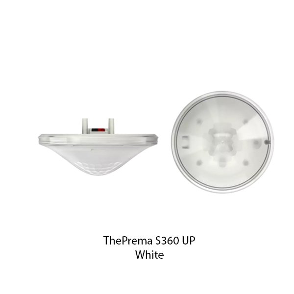 theben thePrema S360 KNX UP merupakan perangkat deteksi kehadiran berbasis passive infrared. thePrema S360 KNX UP dirancang untuk pemasangan pada ceiling dan kompatibel dengan sistem KNX. Mendeteksi entitas dalam ruang 360° berbentuk persegi, dilengkapi 2 channels lighting, 2 channels presence yang dapat diatur manual. Override manual lewat tombol KNX eksternal, mode otomatis/semiotomatis, fungsi malam/hari (day/night switching), orientasi / standby (orientation light). Mendukung penggabungan beberapa sensor dalam konfigurasi master, slave.