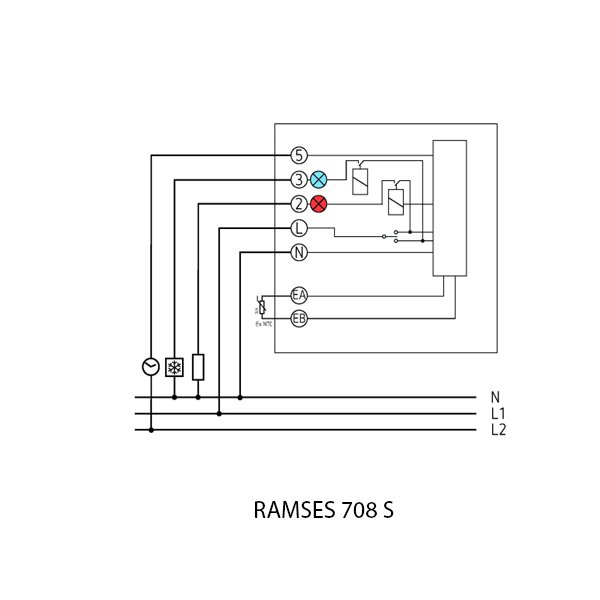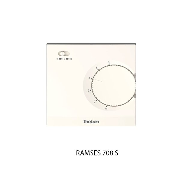 Theben RAMSES 708 S merupakan thermostat ruangan elektronik built-in untuk mengontrol beberapa jenis system pemanas (pemanas gas, air, listrik, pendingin). Mekanisme diatur manual melalui control wheel/knob, memiliki saklar on/off untuk mematikan/mengaktifkan pemanas, dilengkapi LED Indikator sebagai penanda visual status pemanas on/off. Memiliki opsi pengurangan suhu eksternal (temperature setback) melalui kontrol eksternal untuk efisiensi energi. Menggunakan mekanisme snap-on untuk pemasangan tanpa skrup dan cocok untuk pemasangan pada dinding.