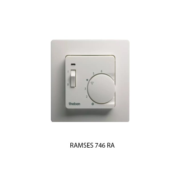 Theben RAMSES 746 RA merupakan thermostat ruangan mekanis satu set frame, dirancang sebagai kontrol suhu sederhana (on/off) berbagai jenis sistem pemanasan (gas, air, listrik, central heating, atau pemanas individu) dalam regulasi ruangan tunggal atau sistem pemanasan pusat. Pengoperasian dasar dengan merespon suhu ruangan untuk mengaktifkan atau mematikan pemanas yang diukur secara “thermal feedback”. Mendukung temperature reduction / penurunan suhu hingga 4 °C untuk efisiensi energi. Dilengkapi saklar on/off untuk mematikan atau mengaktifkan pemanas secara manual melalui thermostat dan indikator LED untuk mengetahui pemanas aktif/tidak.