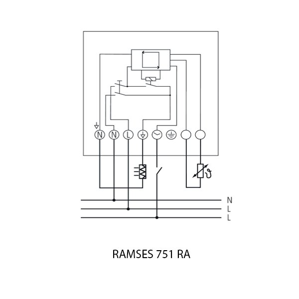 Theben Ramses 751 RA merupakan thermostat ruangan elektrik dengan remote/floor sensor dirancang untuk mengatur temperature lantai. Pengoperasian menggunakan saklar 2-pole (on/off), dilengkapi LED Indicator sebagai penanda visual statur pemanas. Memiliki emergency mode untuk antisipasi saat sensor utama bermasalah dengan daya aktif 30%. Terdapat opsi pengurangan suhu eksternal 3k/5k melalui input eksternal (timer/clock), mekanisme setting temperature bisa dibatasi (mechanical limitation or lock) agar pengguna tidak mengubah suhu melebihi batas tertentu.