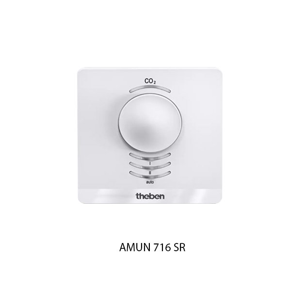 Theben AMUN 716 SR merupakan sensor co2 untuk mengukur konsentrasi CO2 sekaligus juga mengukur temperatur dan kelembapan relatif (humidity), dilengkapi relay-output untuk mematikan/menghidupkan fan atau ventilasi saat CO2 melewati ambang batas. Menampilkan peringatan visual kadar CO2 dalam ruangan.