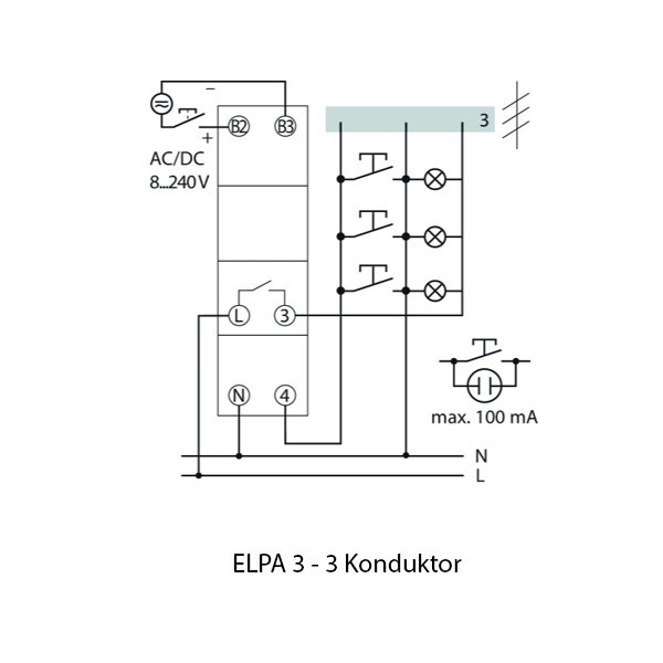 Theben ELPA 3 merupakan timer digital untuk penerangan area tangga dengan timer otomatis. Mendukung fungsi timer ataupun lampu terus menyala/permanen (toggle switch untuk continuous light). Dilengkapi “switch-off pre-warning” sebagai indicator jika limit timer hamper habis (lampu berkedip dua kali). Memiliki input tombol/push-button dilengkapi proteksi overload, mendukung opsi “multi-voltage input” galvanically – isolated (AC/DC 8-240 V) (bisa digunakan bersama interkom atau sistem kontrol eksternal)