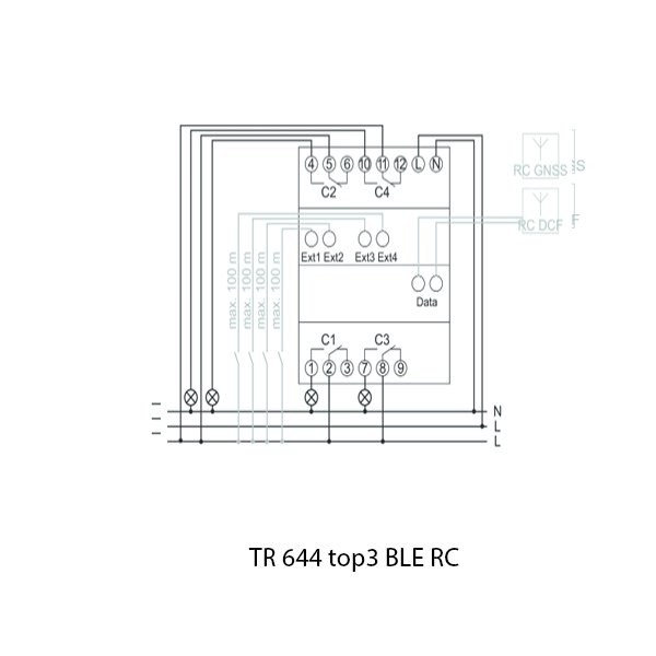 Theben TR644 BLE RC merupakan timer digital untuk mengatur otomatis on/off sirkuit listrik berdasarkan jadwal yang diprogram, dilengkapi module BLE (Bluetooth Low Energy) untuk memudahkan pemrograman jadwal melalui aplikasi tanpa harus manual diperangkat. Mendukung fungsi “astro” program untuk menghitung otomatis, menyala dan mematikan dengan waktu matahari terbit dan terbenam berdasarkan lokasi. Memiliki 4 kanal output dan input eksternal untuk system kontrol beban listrik yang relative kompleks.