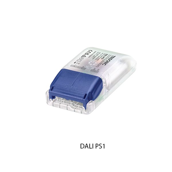 Tridonic DALI PS1 merupakan power supply / catu daya bus untuk system kontrol pencahayaan berbasis DALI-2. Mampu menyediakan tegangan dan arus stabil (bus power) bagi jaringan DALI. Memiliki ukuran compact dan fleksibel, output arus maksimum bus DALI 200Ma.