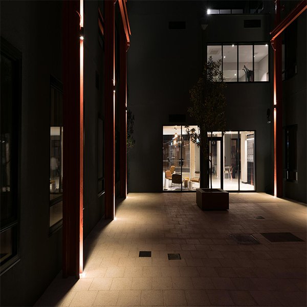 Memancarkan aksen cahaya linear yang menegaskan tekstur dan material dinding. Orientasi sorot dapat disesuaikan untuk membentuk narasi visual yang subtil nan kuat.